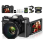 - 【9 Shooting Modes & 48MP Camera】This 48MP digital camera has 9 shooting modes: photo, video, auto photo, timed photo,continuous photo,slow motion shooting, Time-lapse Video, Loop Video,Video+Photo.The box Included: camera, 2 1500 mAh batteries, a 32G memory card, a portable charger (you can charge the batteries separately), a lanyard, a cleaning cloth, a usb cable